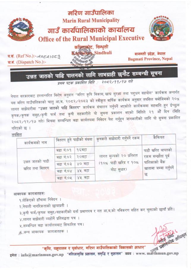 उन्नत जातको पाडि पालनको लागि लाभग्राही छनौट सम्बन्धी सूचना।