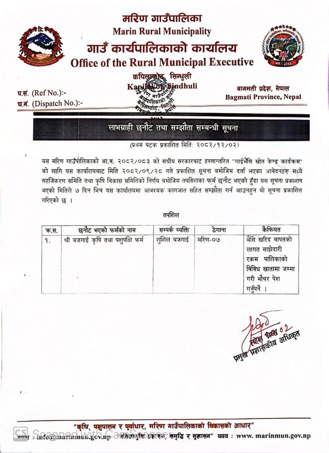 लाभग्राही छनौट तथा सम्झौता सम्बन्धी सूचना।