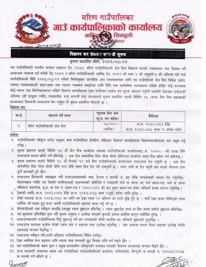 विज्ञापन कर संकलन सम्बन्धी सूचना।