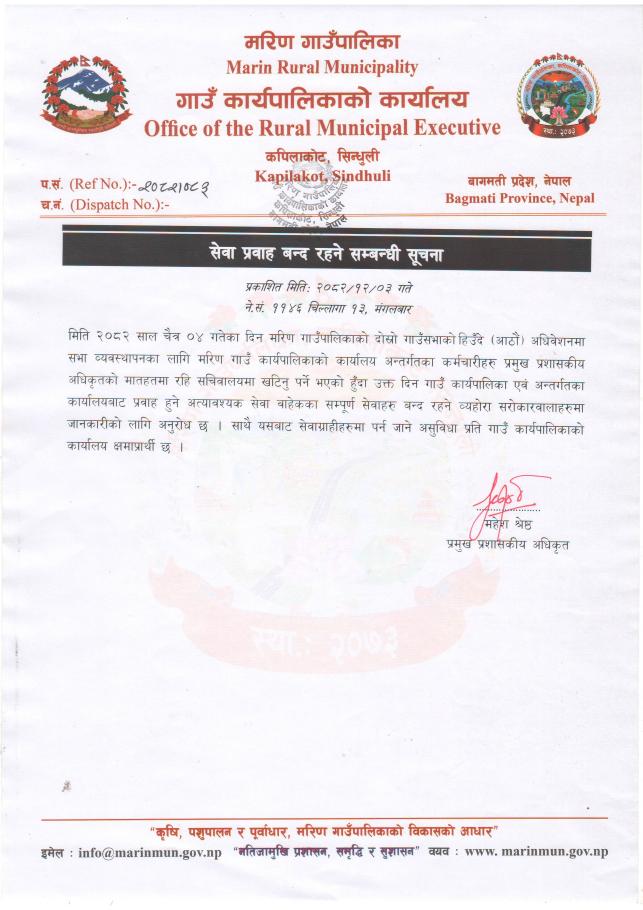 सेवा प्रवाह बन्द रहने सम्बन्धी सुचना।