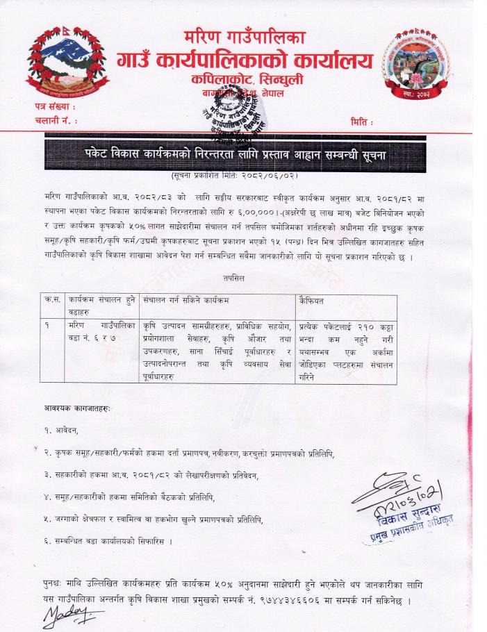 पकेट विकास कार्यक्रमको निरन्तरता लागि प्रस्ताव आव्हान सम्बन्धी सूचना