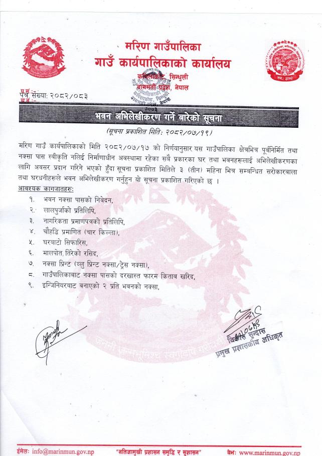 भवन अभिलेखिकरण गर्ने बारेको सूचना