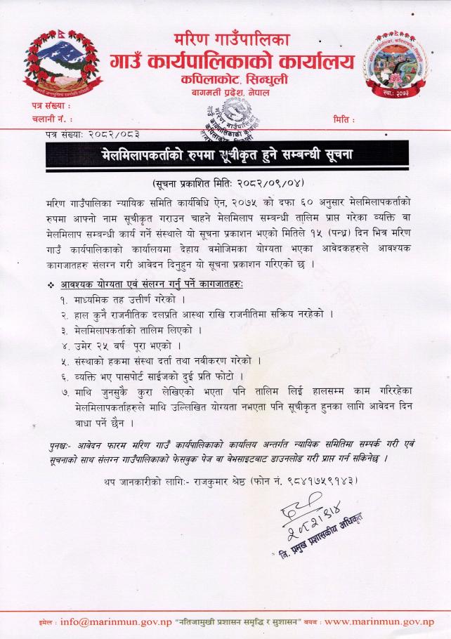 मेलमिलापकर्ताको रूपमा सूचीकृत हुने सम्बन्धी सूचना