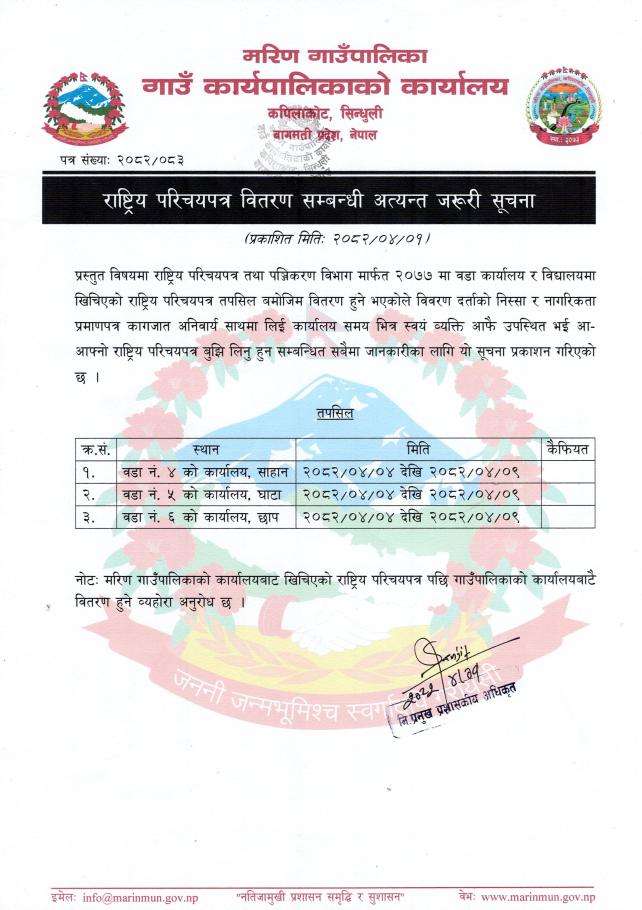 राष्ट्रिय परिचयपत्र वितरण सम्बन्धी अत्यन्त जरूरी सूचना